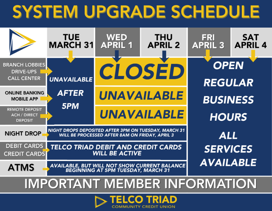 All April 1, 2 and 3 direct deposits will post early on March 31.